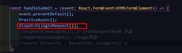 다음과 같이 적어주면 handleSubmit이라는 함수가 실행될 때 dispatch함수를 통해 reducer가 실행되면서 전역 상태를 변경할 수 있다. 또한 이 변경된 상태를 이용하여 추가적으로 작업도 할 수 있게 된다.
