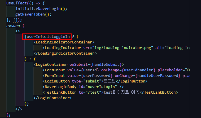 다음과 같이 조건부렌더링 등에 사용할 수 있다. userInfo중에 어떠한 상태에 따른 조작이 가능하다는 것이다.