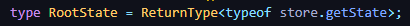 따라서 RootState를 다음과 같이 store.getState()함수의 ReturnType으로 지정한다.